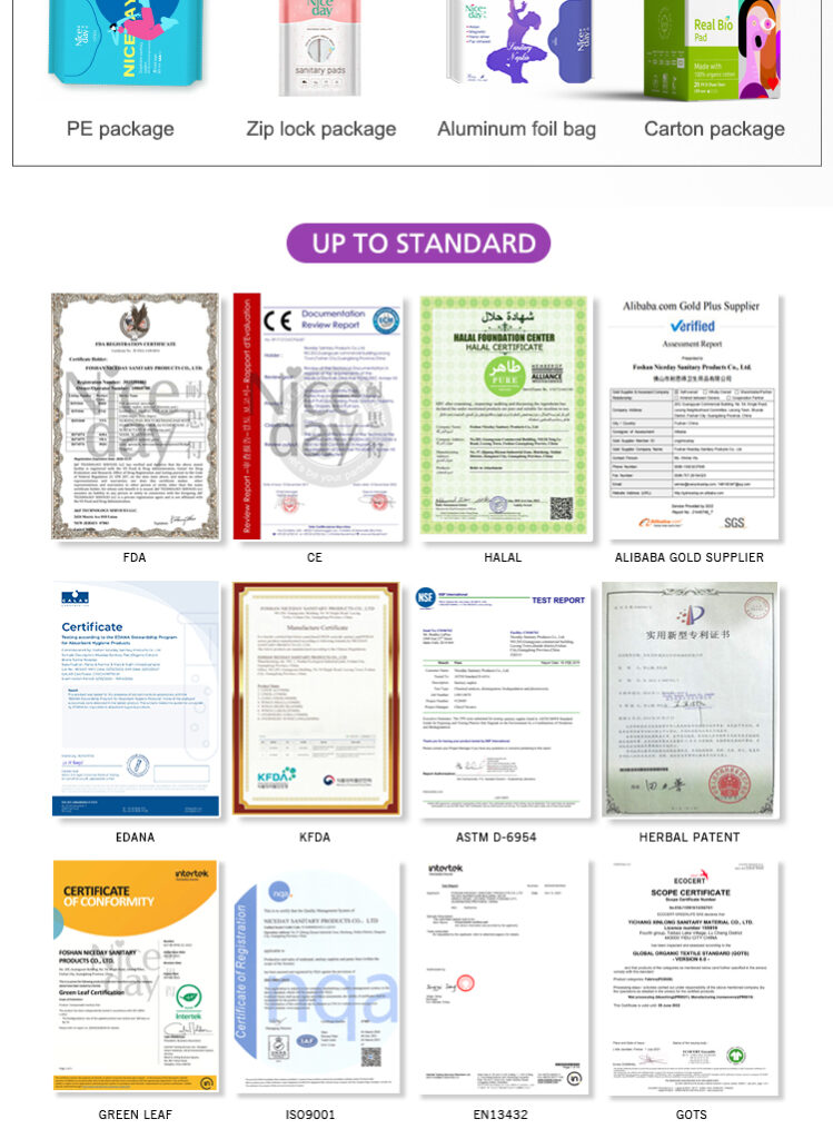| Inner layer | Wood plup, Fluff pulp, Tissue, Absorbant paper, Organic cotton, SAP(Japan’s sumitomo), PLA SAP(Corn starch is biodegradable)or mix the above |