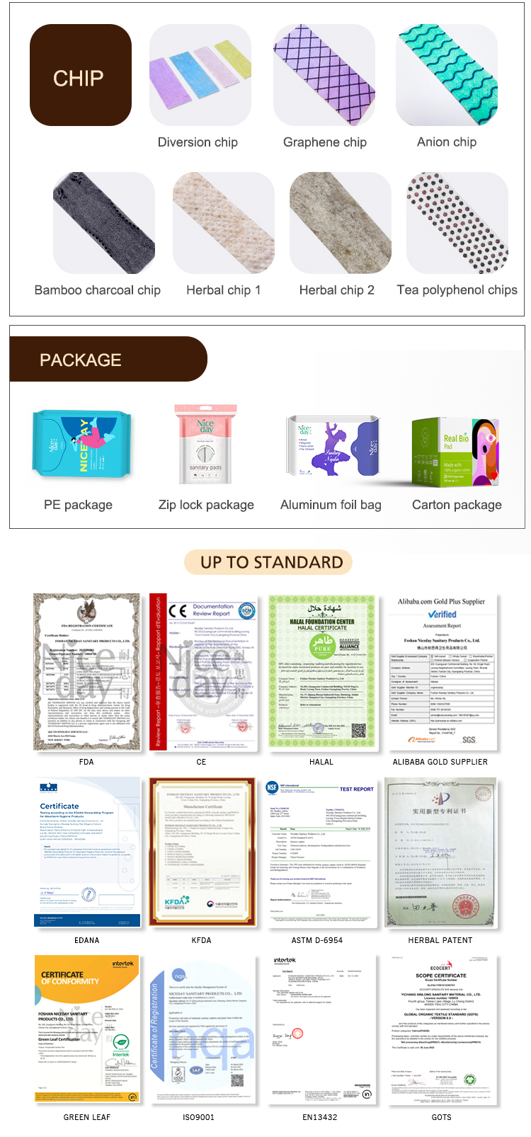Inner layer | Wood plup, Fluff pulp, Tissue, Absorbant paper, Organic cotton, SAP(Japan’s sumitomo), PLA SAP(Corn starch is biodegradable)or mix the above |