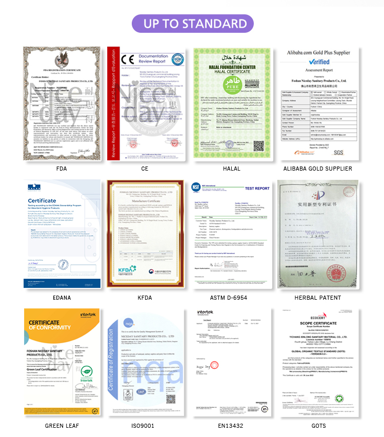 - Certification: CE, FDA, ISO9001, GOTS, EN13432, Green leaf, KFDA, Texas organic, COTTON USA, HALAL